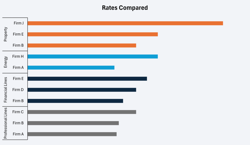 Hourly rates will vary by the Line of Business the matter will relate to. We compare all rates from an insurers panel, applying the blended average. By doing this we are able to compare true costs per hour across any panel firm.
